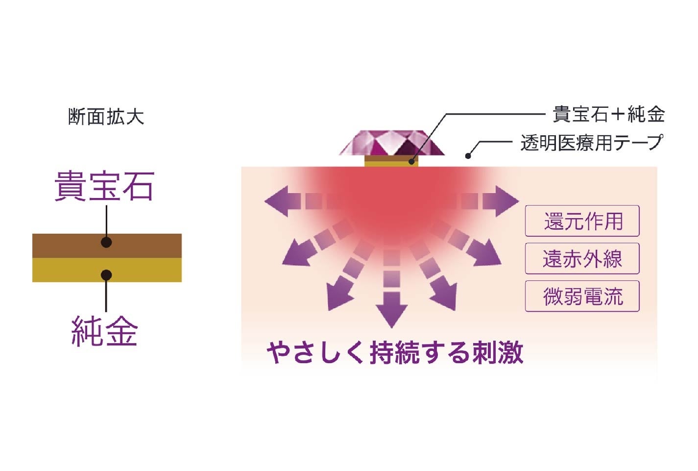 医療用テープと純金仕様のため、かぶれや金属アレルギーの心配がほとんどありません。