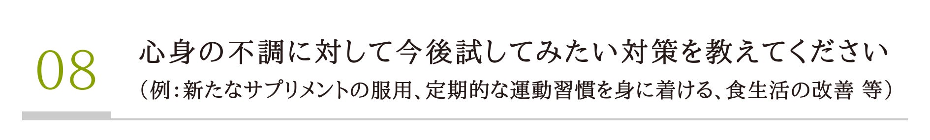 今回の調査では、身体の不調を感じている方を対象に現在の身体の状態や対策方法について伺っていきたいと思います。