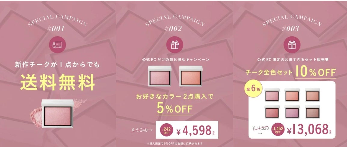 現在、公式ECサイトでは「メロウメルティングチーク」の発売を記念し、期間限定の特別キャンペーンを開催中です。どこよりもお得な特別セットもご用意しておりますので、この機会にぜひお試しください。