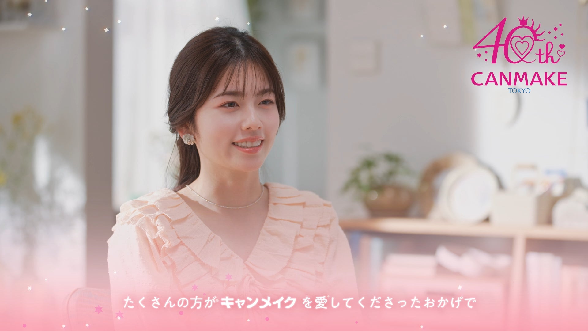 そんな小芝さんから、今年ブランド誕生40周年を迎えるにあたり、お祝いのコメントが届きました!お祝いコメントムービーは、3月21日(金)にオープンした40周年特設サイトをはじめ、公式YouTube、インスタグラム、Xで公開中です。ムービー内では、キャンメイクを愛してくださっている皆さまへの感謝のメッセージもお伝えしています。