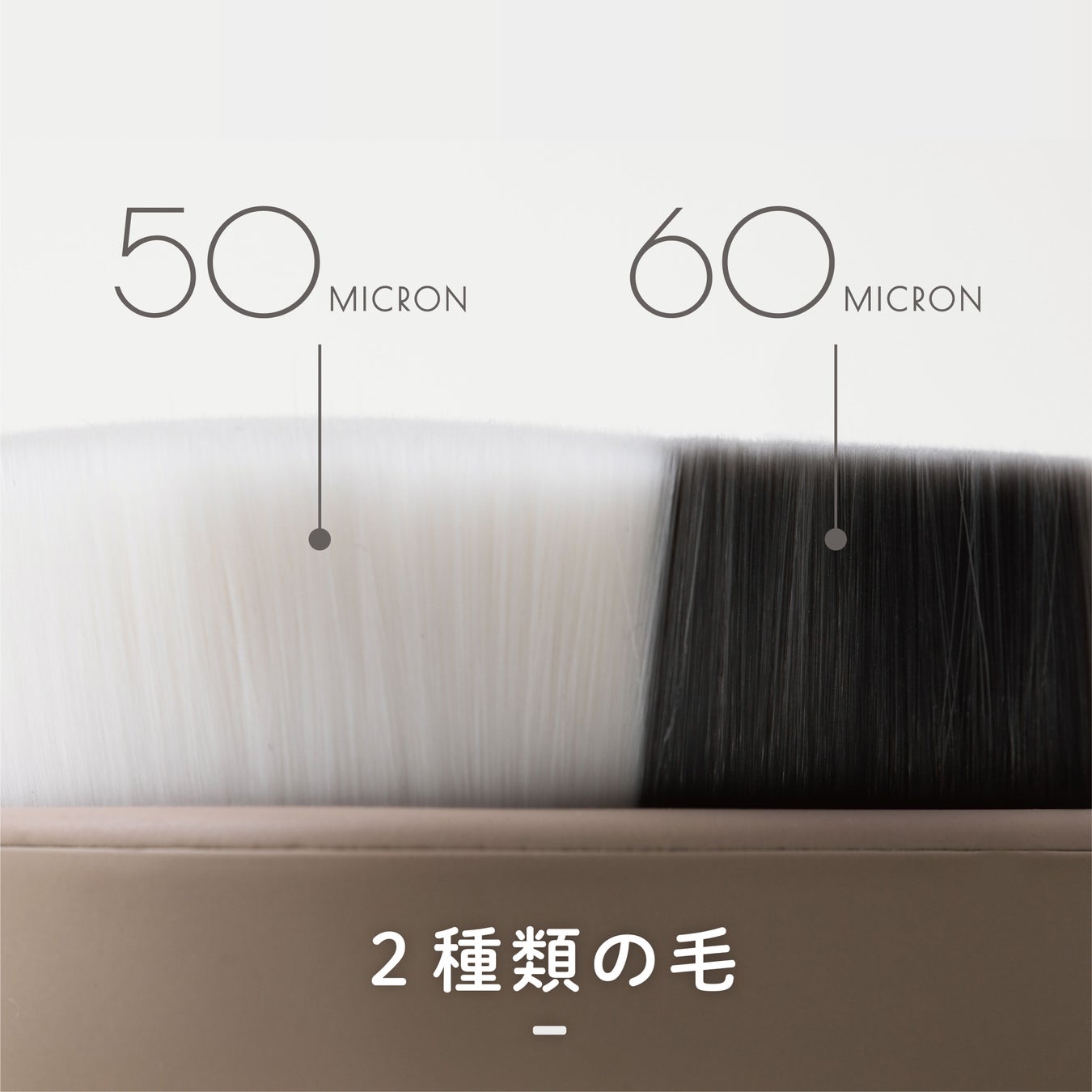 一本一本をテーパード(先細り)加工した毛先を採用し、均一で吸い付くような肌触りを実現。最も心地よい肌あたりを求めて1ミリ単位でブラシの長さを調整し、とろけるような極上の使い心地を追求しました。