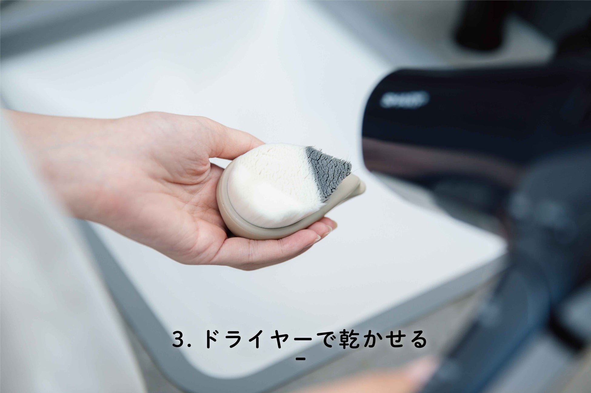 自立するデザインで通気性が良く、自然に乾きやすい構造。さらに、抗菌加工を施した毛を採用し、ドライヤーで素早く乾かすことも可能。いつでも清潔に保ち、快適にお使いいただけます。