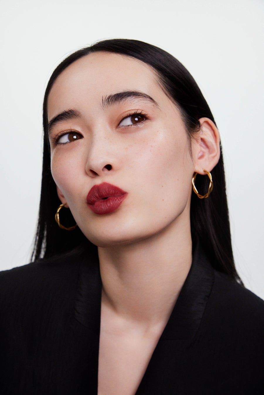 まるで熟成された深みのあるウォームレッド510 MULBERRY MOIREは指でステインして感度高い唇に。