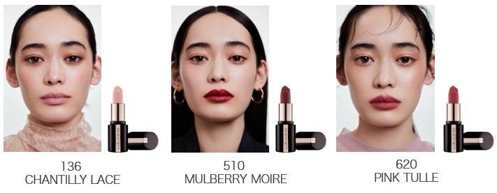 ローラ メルシエ創設者であるローラ・メルシエが見て、触れて、経験した様々な国や土地、食べ物、物体がインスピレーション源となり開発されるシェードやシェードネーム。新しく登場する「ローラ メルシエ キャビア リップスティック」は、布の生地素材からインスパイアを受け、実際に触れた感触や見た目を想起させるシェードネームに。柔らかく軽やかなマットのテクスチャーに着地しながらも、様々な異なる素材の質感を感じられるシェードやシェードネームをお楽しみいただけます。
