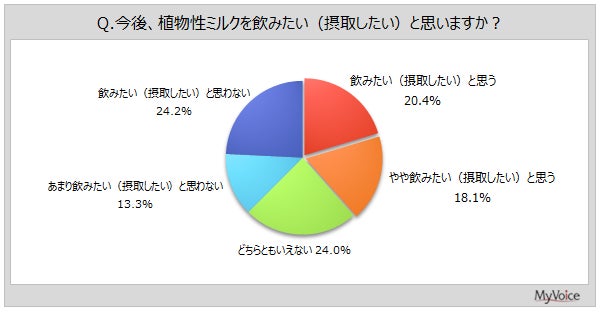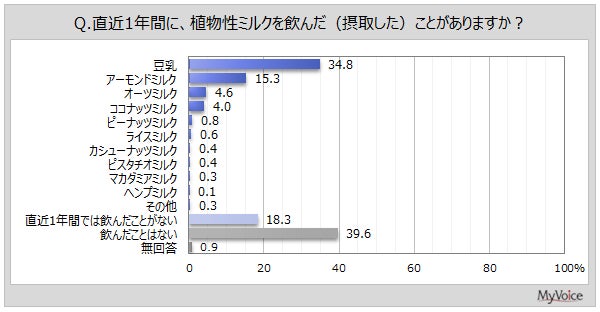 https://myel.myvoice.jp/products/detail.php?product_id=32002 ※上記設問の他に、植物性ミルクの「飲用頻度」「購入時の重視点」も聞いています。 |