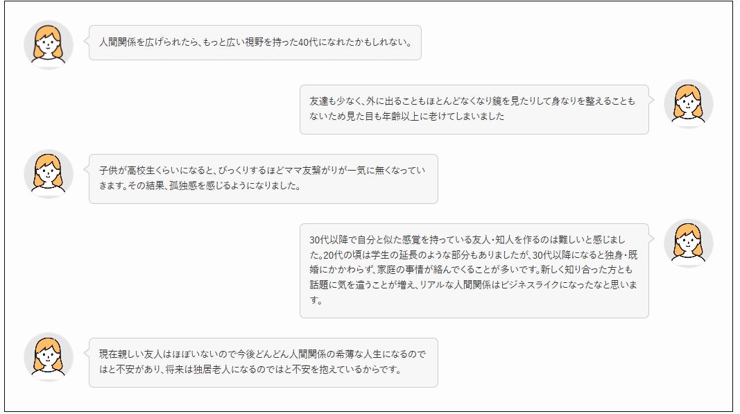 家族や仕事に追われて友人関係が疎遠になり、寂しさを感じる人が多いようです。