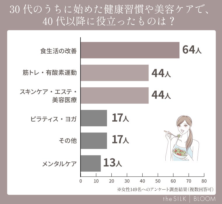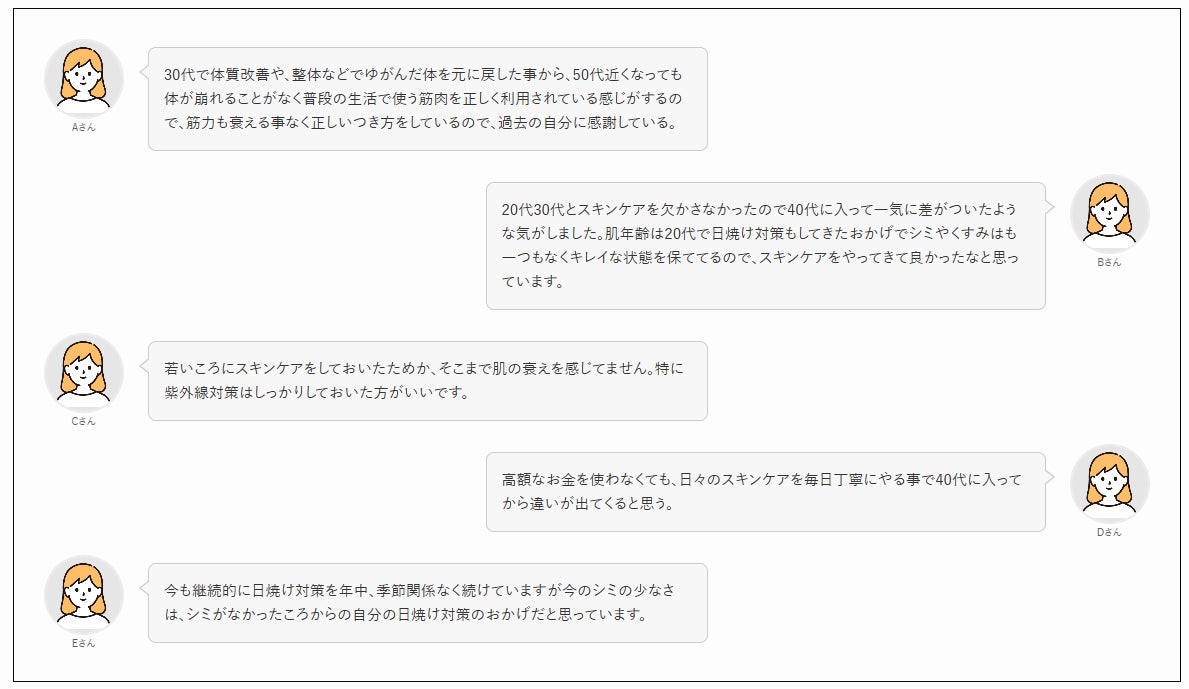 ここまでの調査で、30代で取り入れた健康習慣や美容ケアが40代以降の生活に大きな影響を与えることが明らかになっています。