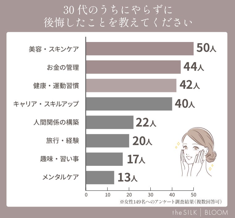そこで今回は149人の女性にアンケートを実施し、40代になって後悔しないために30代でやるべきことを徹底調査。