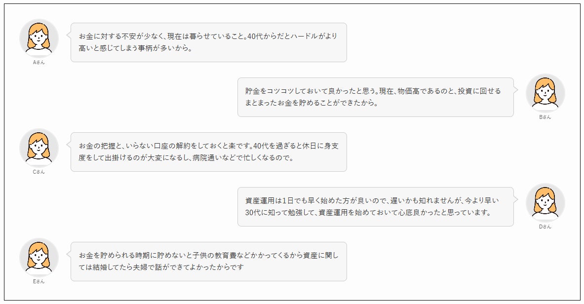 さらに口座の整理や固定費の見直しなど、手間のかかる作業を30代のうちに済ませておくことで、40代以降の金銭管理が楽になるとの声も多く見られました。