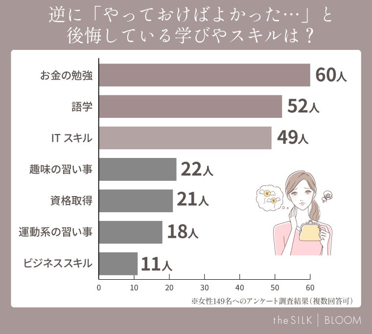 一方で今回の調査では、「もっと早く学んでおけばよかった」と後悔している分野も明らかになりました。