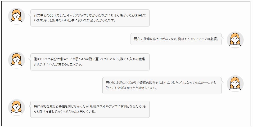 特に、「転職や再就職の際に資格やスキルがないと不利になる」と実感するケースが目立ちました。