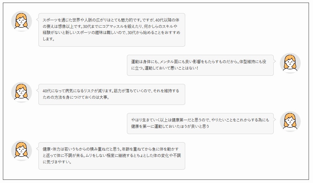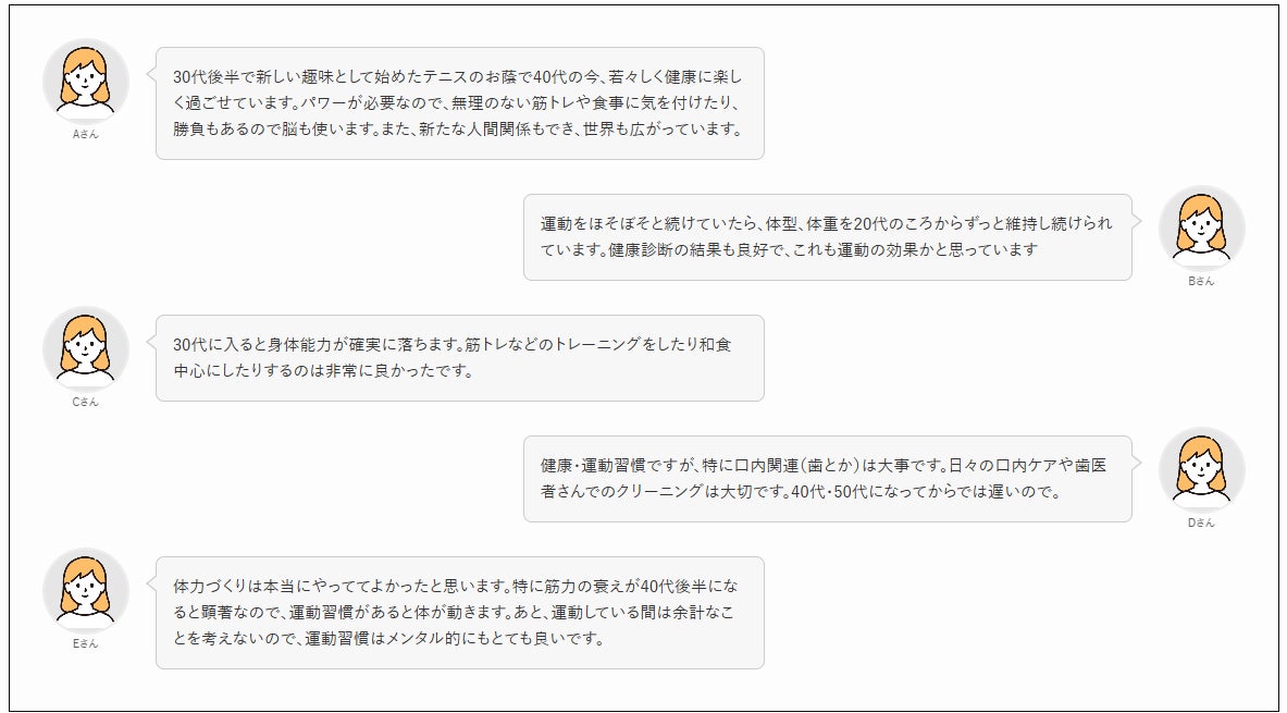 「30代後半から体力が落ちるのを実感した」「40代になっても元気でいるために始めてよかった」という声が多数ありました。