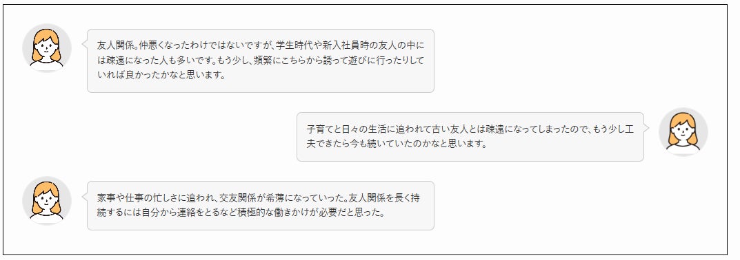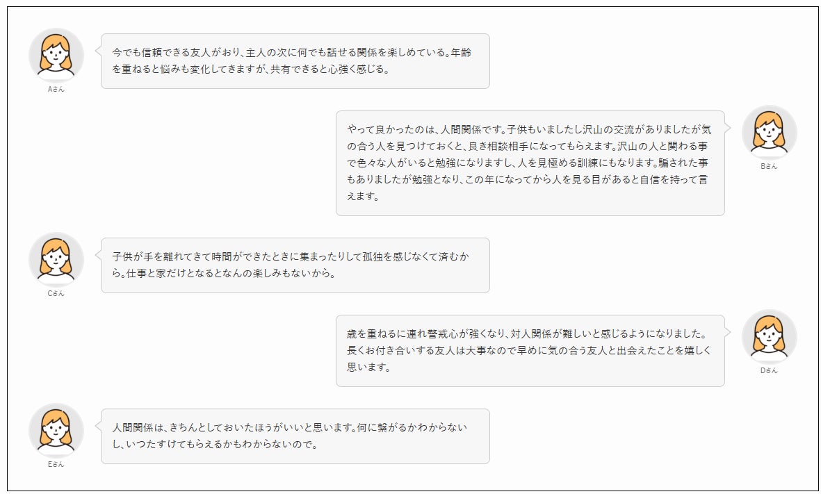 仕事や家庭の変化があっても、昔からの友人がいることで気持ちの支えになったという意見が多数寄せられています。