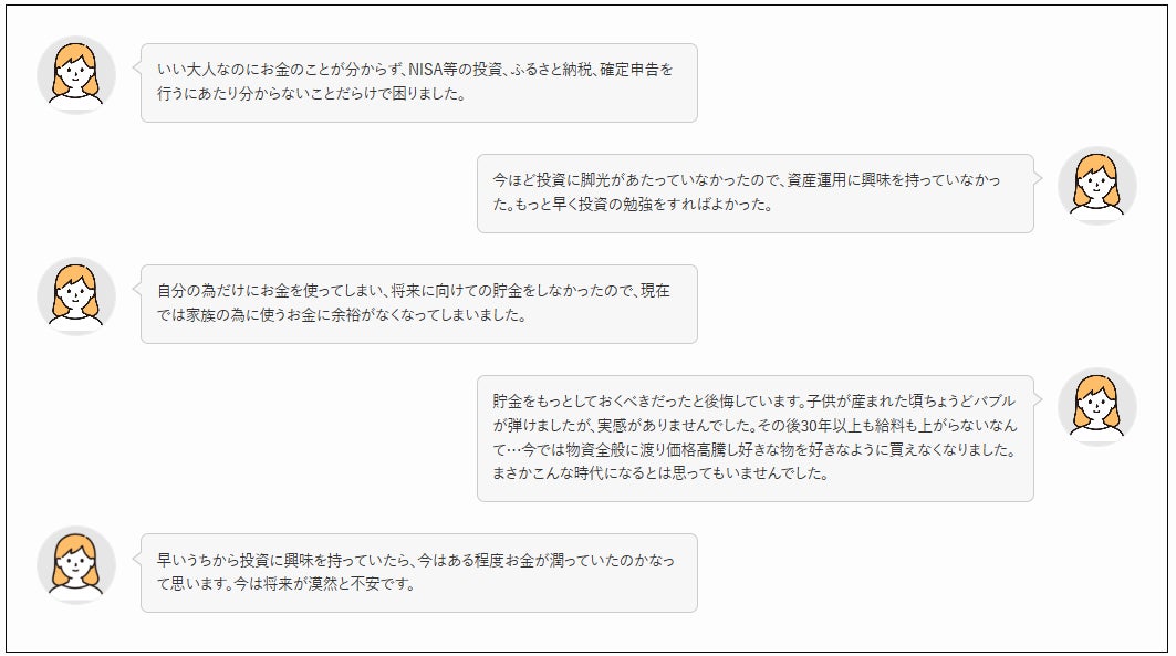 圧倒的に多かったのは、投資や資産運用などお金に関する学びの機会を逃したことへの後悔です。