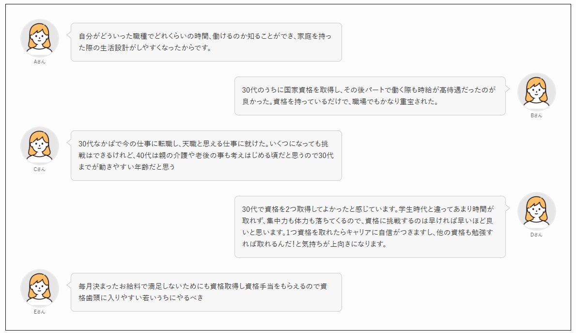 また「資格を取ることで自信がついて他の挑戦もしやすくなった」 という声もあり、キャリアアップの成功体験がさらなる成長につながることが分かります。
