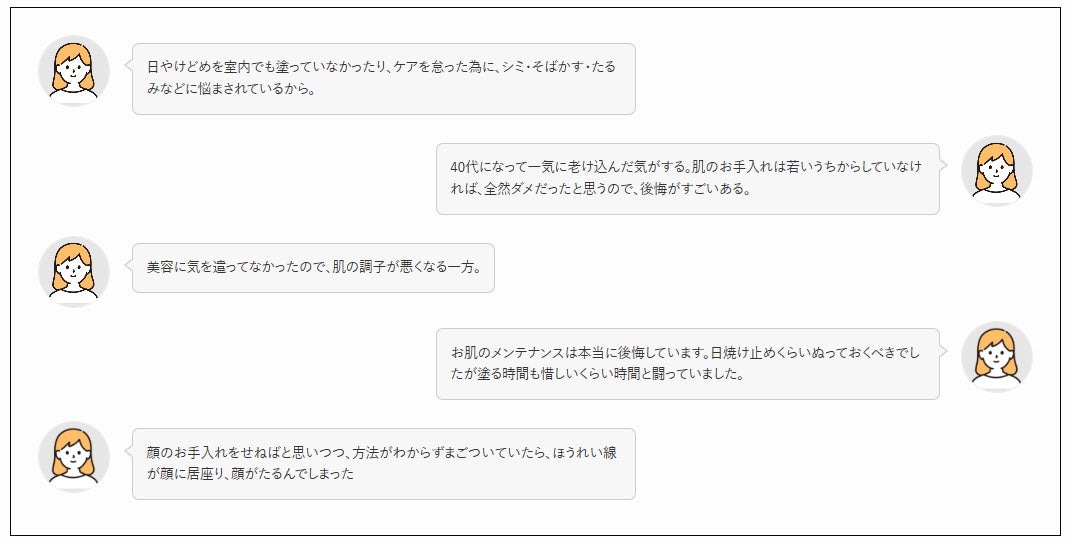 特に紫外線対策や保湿を怠ったことを後悔する声が多く、「気づいたときにはシミ・たるみが…」と後悔するケースが目立ちました。