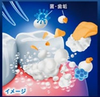*1 重曹とクエン酸が水や唾液と反応して発泡する非水系処方 日本ゼトック提供情報に基づく、花王独自調査及びMintel社データベース(GNPD)を用いた花王調べ(2024年9月) *2 水に触れると重曹とクエン酸が反応 *3 重曹とクエン酸の反応による自発泡のこと *4歯とハグキのすき間のこと *5 ブラッシングによる *6 歯肉炎、歯周炎の総称