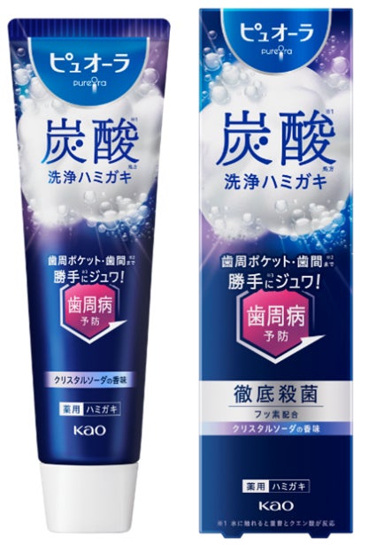 花王が歯磨きの実態について調査したところ、お口や歯の健康意識が高まる一方、歯科医から“正しい磨き方”指導を受けても、“いつもの磨き方をなかなか変えられない” ”磨き残しを指摘される”人が多いことがわかりました。そこでこの春ピュオーラは、炭酸*2泡が勝手に*3発泡し、歯周ポケット*4や歯間まで*5入り込み、歯周病*6予防をしてくれる日本初*1の炭酸*2発泡処方の新ハミガキペーストを、2025年4月5日(土)より新発売いたします。
