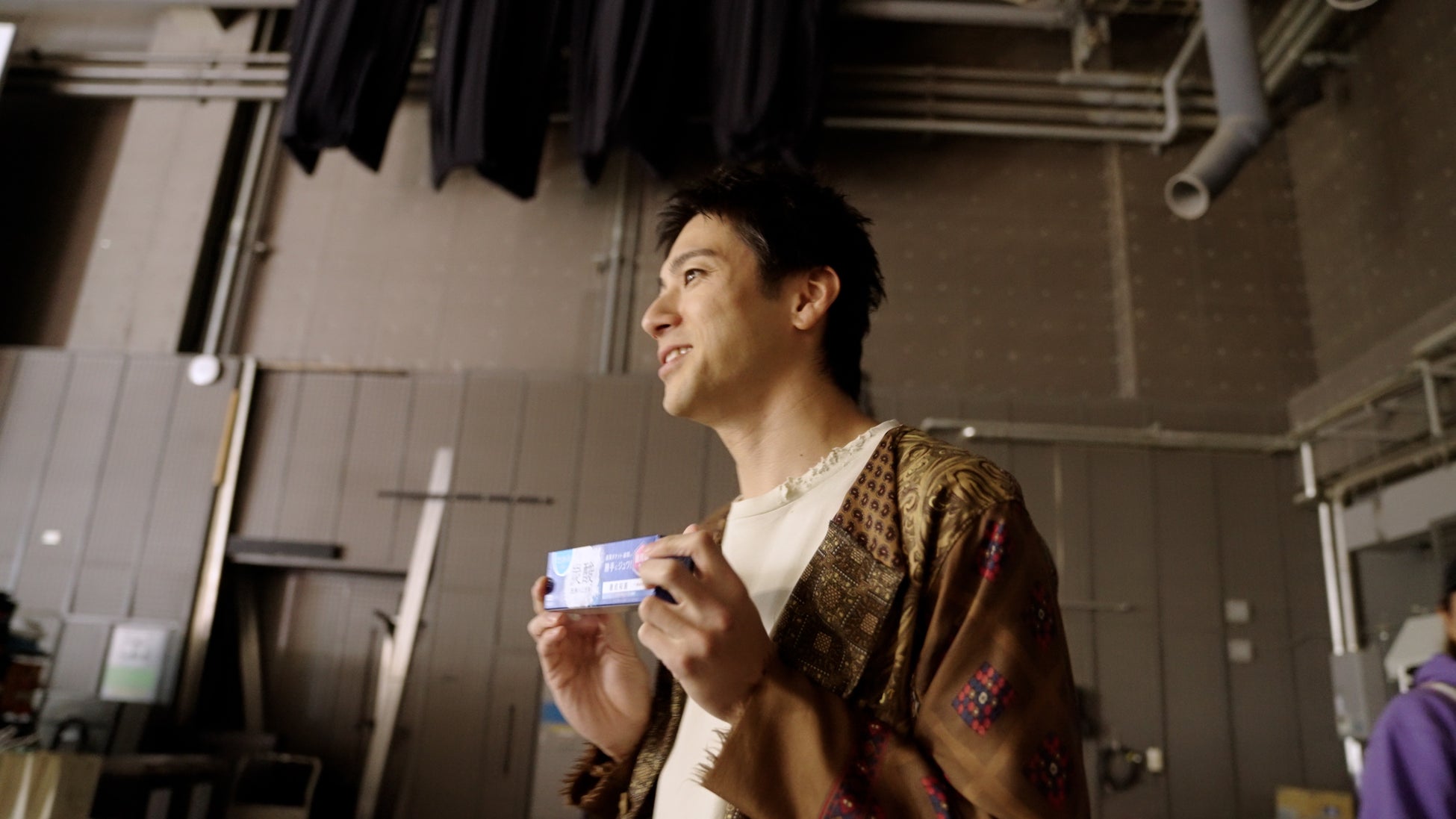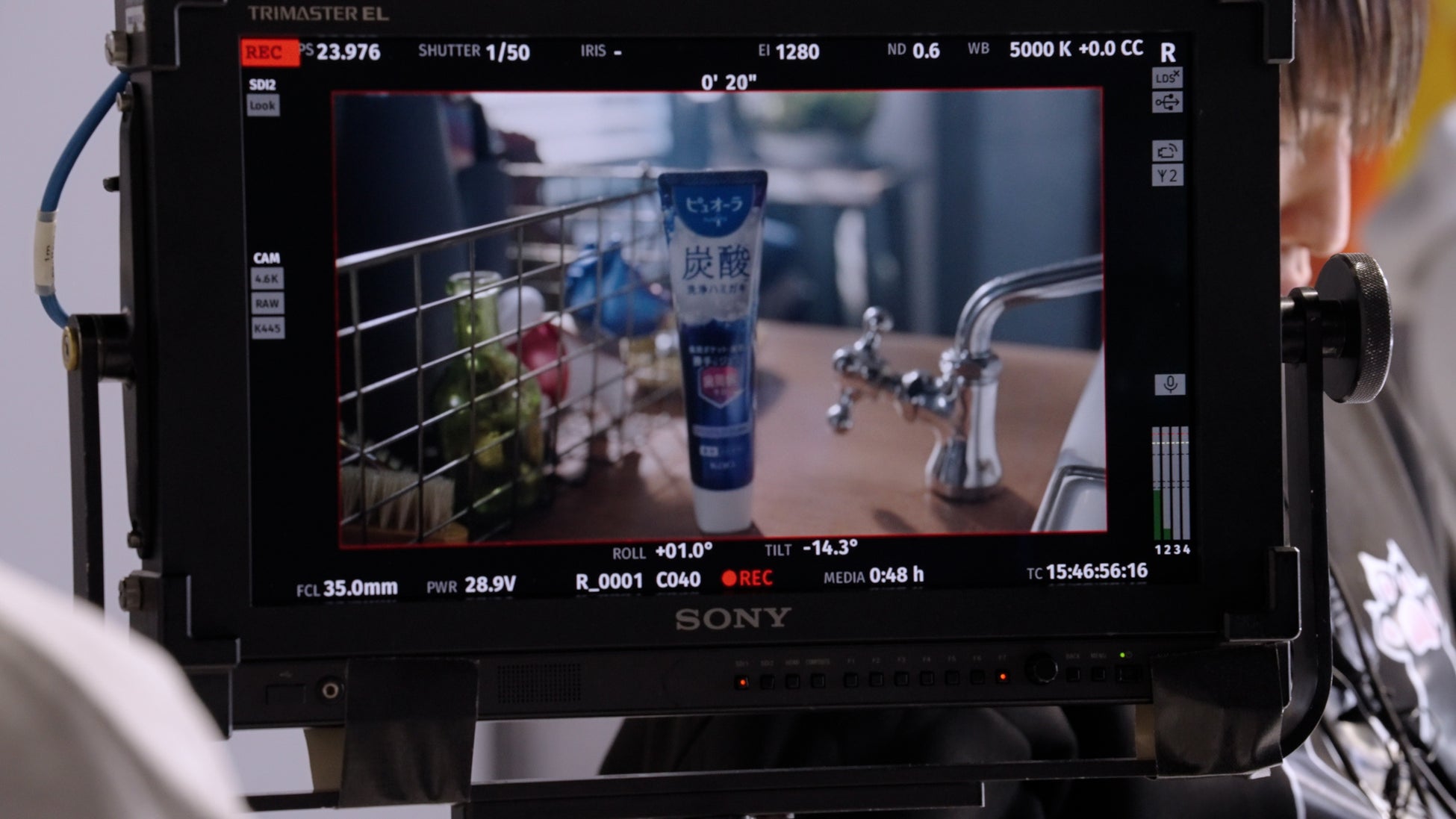 メイキング映像では個性的なシルエットのシャツの袖に腕がなかなか通らず苦戦したり、驚きと喜びの表情をしながら歯磨きするという監督からの指示を受け集中して撮影に取り組む山田さんの様子を捉えています。また、現場に登場する際にピュオーラ炭酸ハミガキの商品をもってカメラに向けてきたり、撮影の合間には少しくだけた表情をみせてくれたりと、山田さんの明るくおちゃめな人柄のおかげで、現場の雰囲気は終始和やかでした。