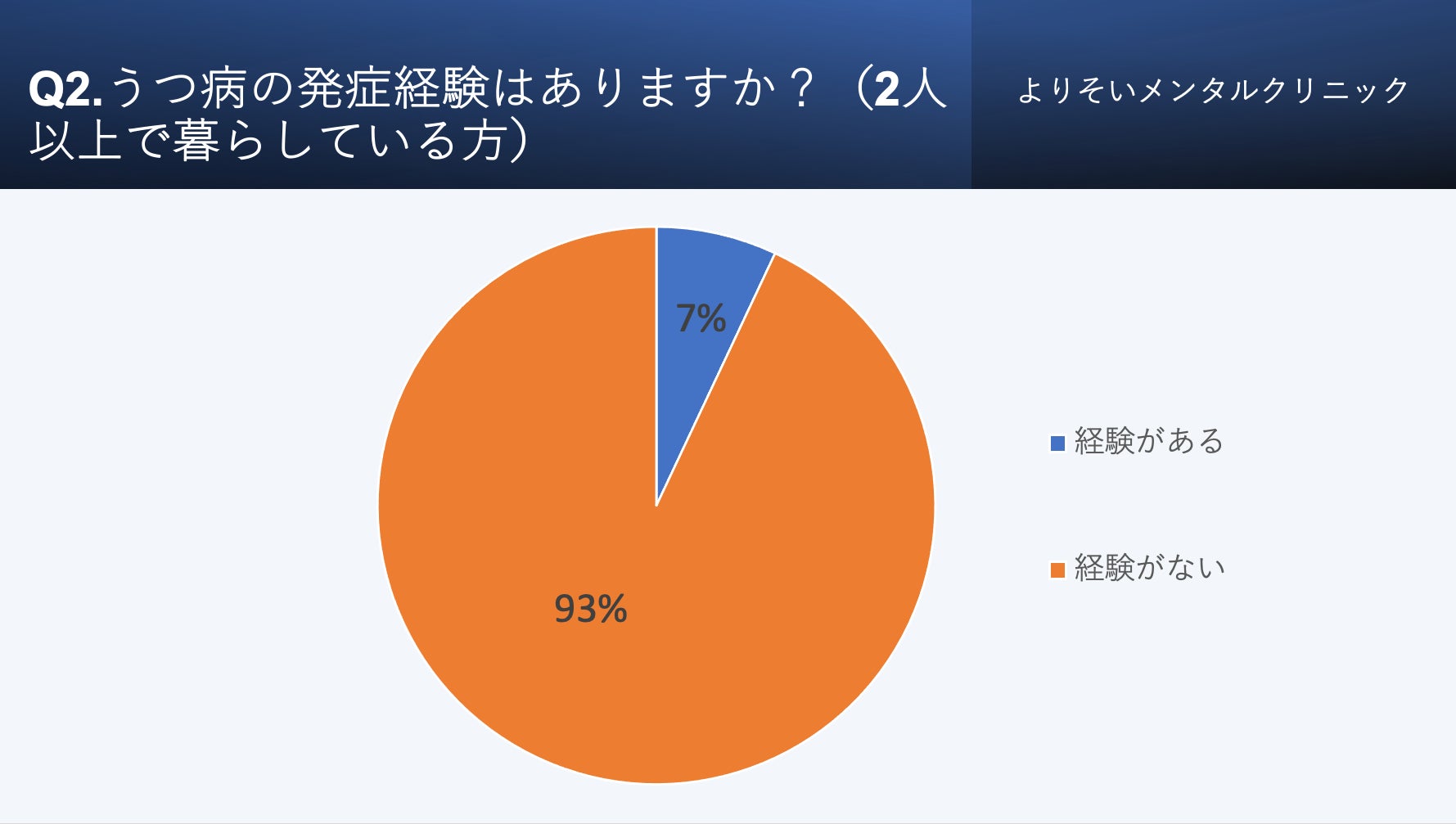2人以上で暮らしている世帯に対してうつ病の発症経験について調査しました。