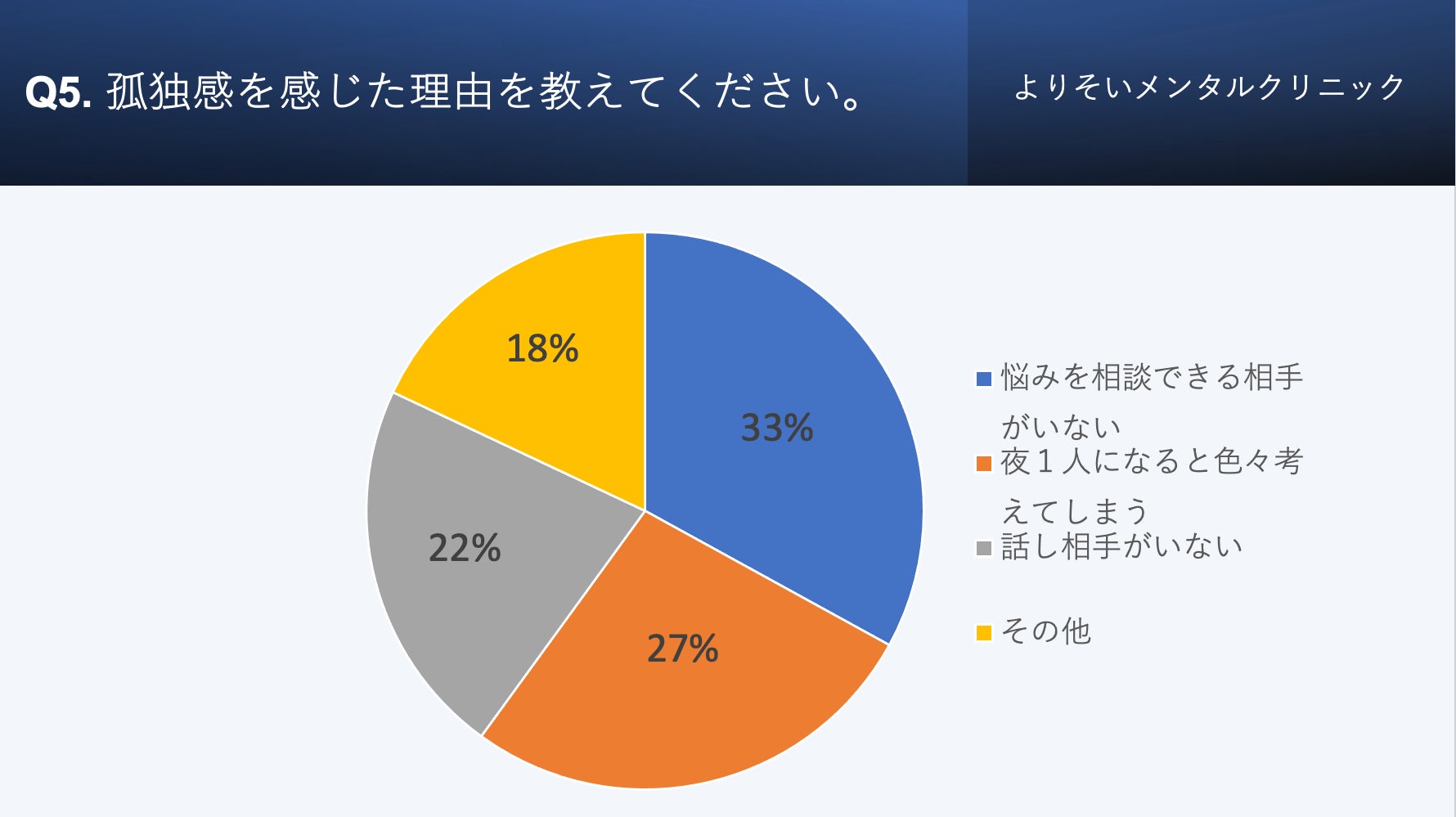その結果、「気軽に悩みを相談できる相手がいない」からであることが分かりました。