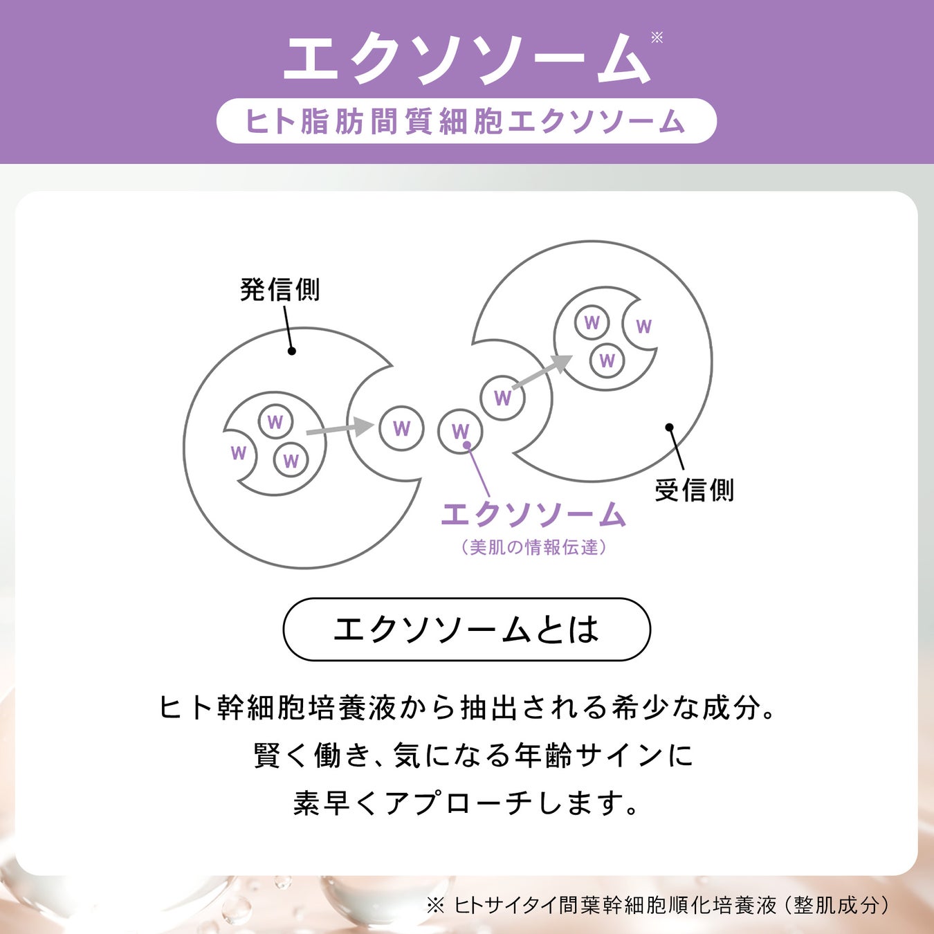 エクソソーム*5はヒト幹細胞培養液から抽出される希少な成分で、肌を美しく保つための情報伝達を行う重要な役割を持ちます。
