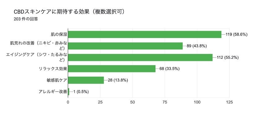 ・特に「肌の保湿」(約58.6%)および「エイジングケア(シワ・たるみなど)」(約55.2%)が高い期待を集める結果となりました。