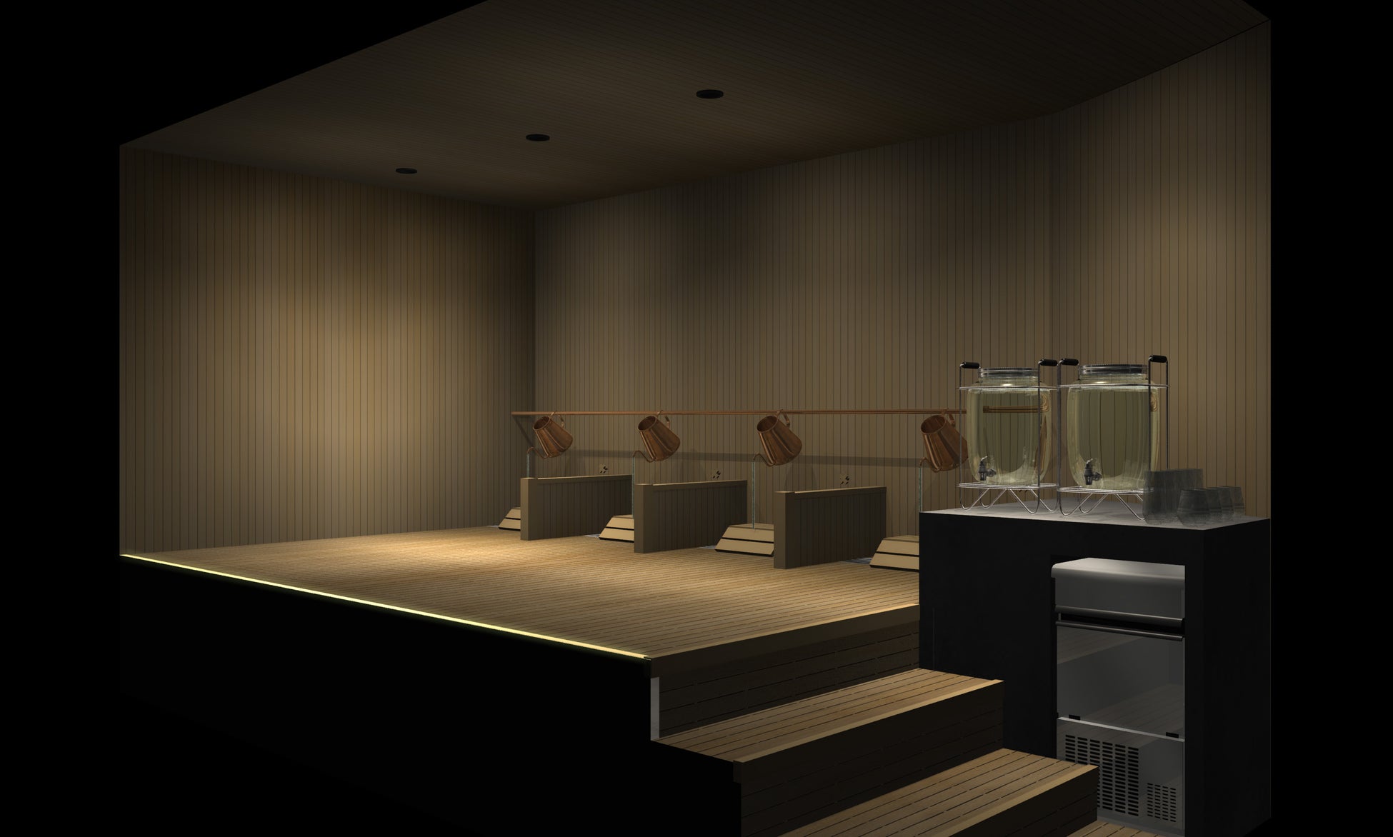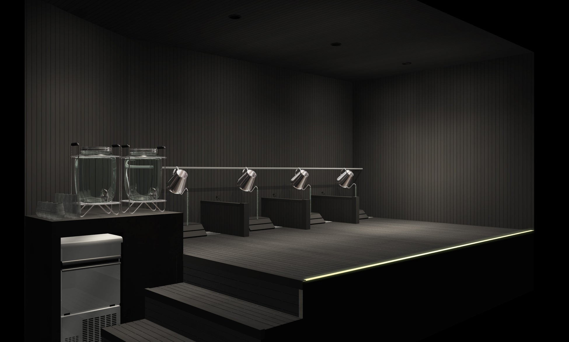 オートロウリュウの為の水筋を視覚化する事で、視覚で、音で、肌で感じる“水の動き”が、