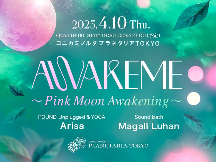 「コニカミノルタプラネタリアTOKYO」(東京・有楽町/運営:コニカミノルタプラネタリウム株式会社/代表取締役社長:本由美子)では、ウェルネスイベント『AWAKEME 〜Pink Moon Awakening〜 新たなスタートと春風のサウンドバス』を2025年4月10日(木)に開催します。