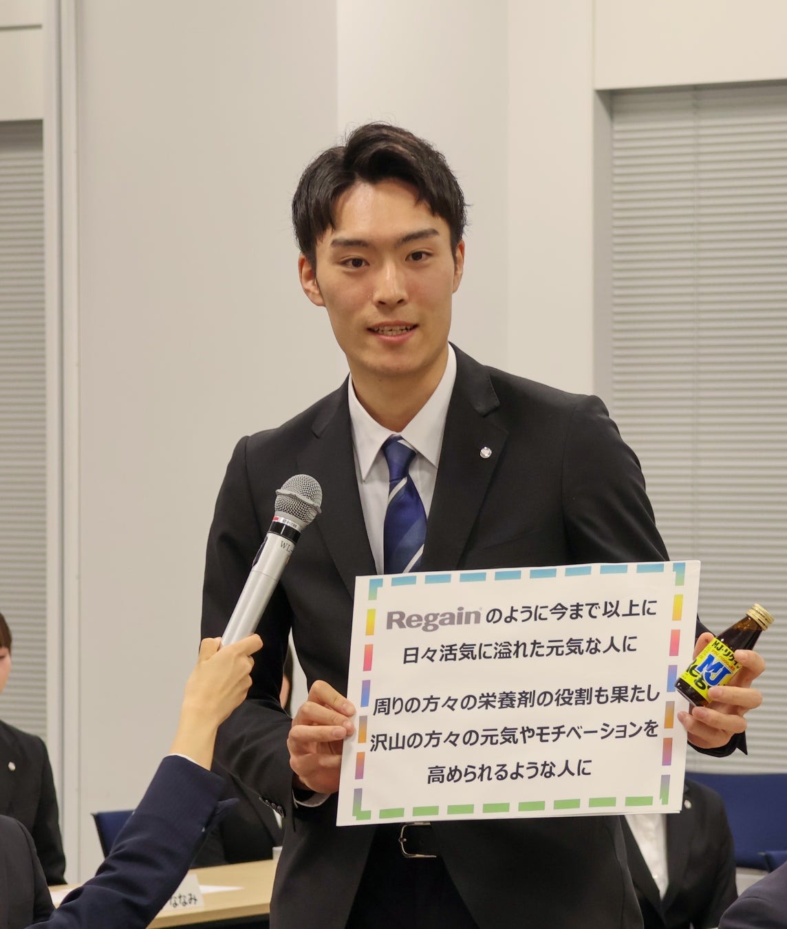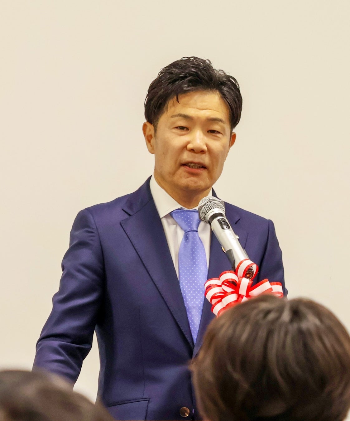 入社式では、代表取締役社長の内田高広が新入社員に向け、「自分自身で健康を守り対処するセルフケアの意識が高まっている」と近年における生活者の意識変化に触れた上で、「果敢に挑戦し、仕事を楽しみ、成長を実感することを喜ぶ、そういった会社生活を送ってくれることを願っています」と新卒社員に向けてメッセージを贈りました。