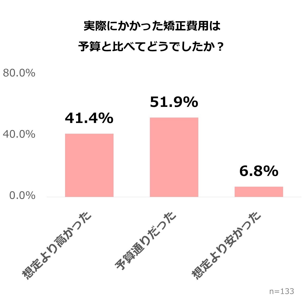 調査結果によると、マウスピース矯正経験者の4割以上が当初想定していた予算を超過しており、その平均超過額は17.7万円でした。