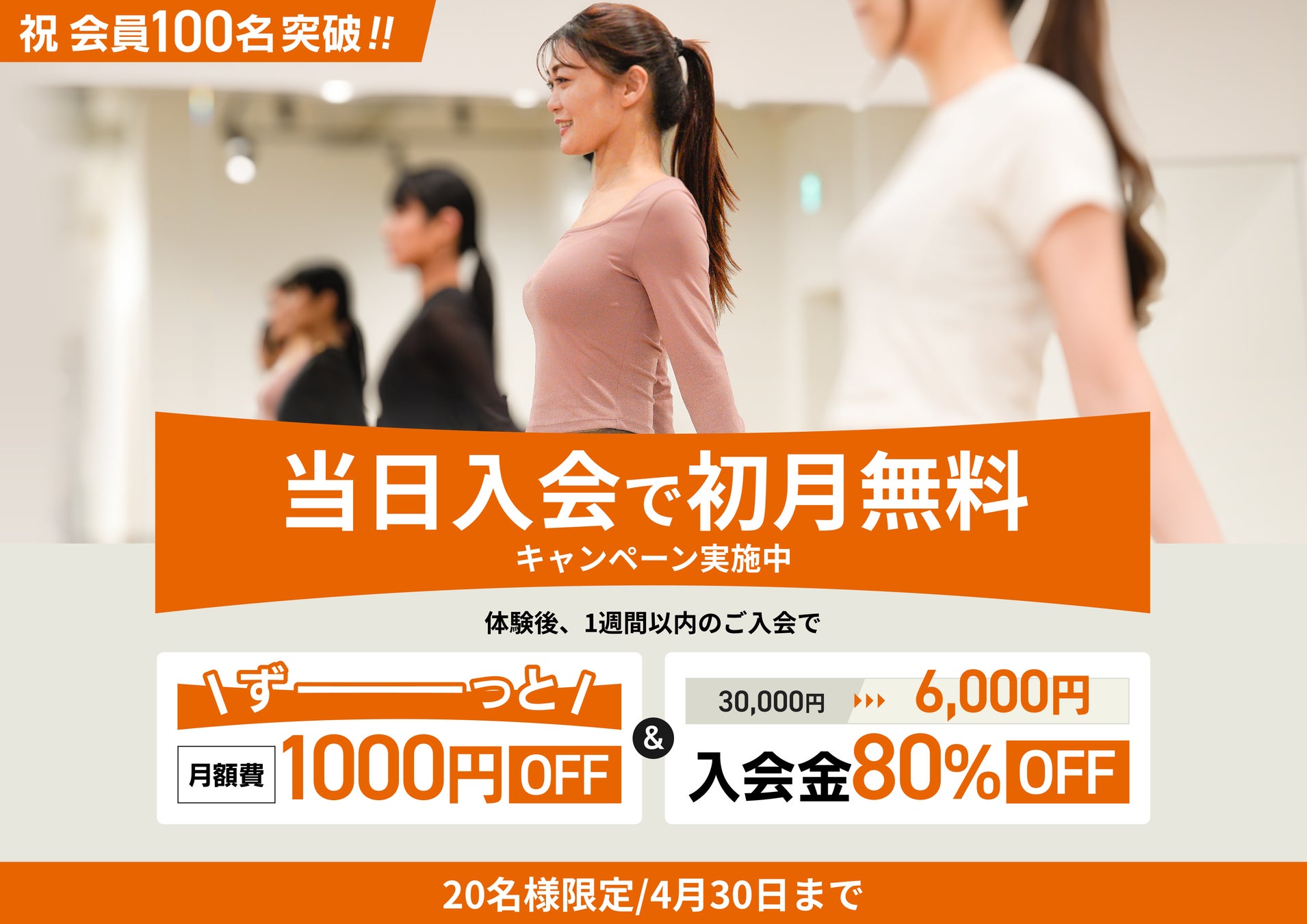 本キャンペーンでは、グループレッスンの月額料金が永年1,000円OFFとなるほか、パーソナルレッスンでもお得な特典をご用意しております。