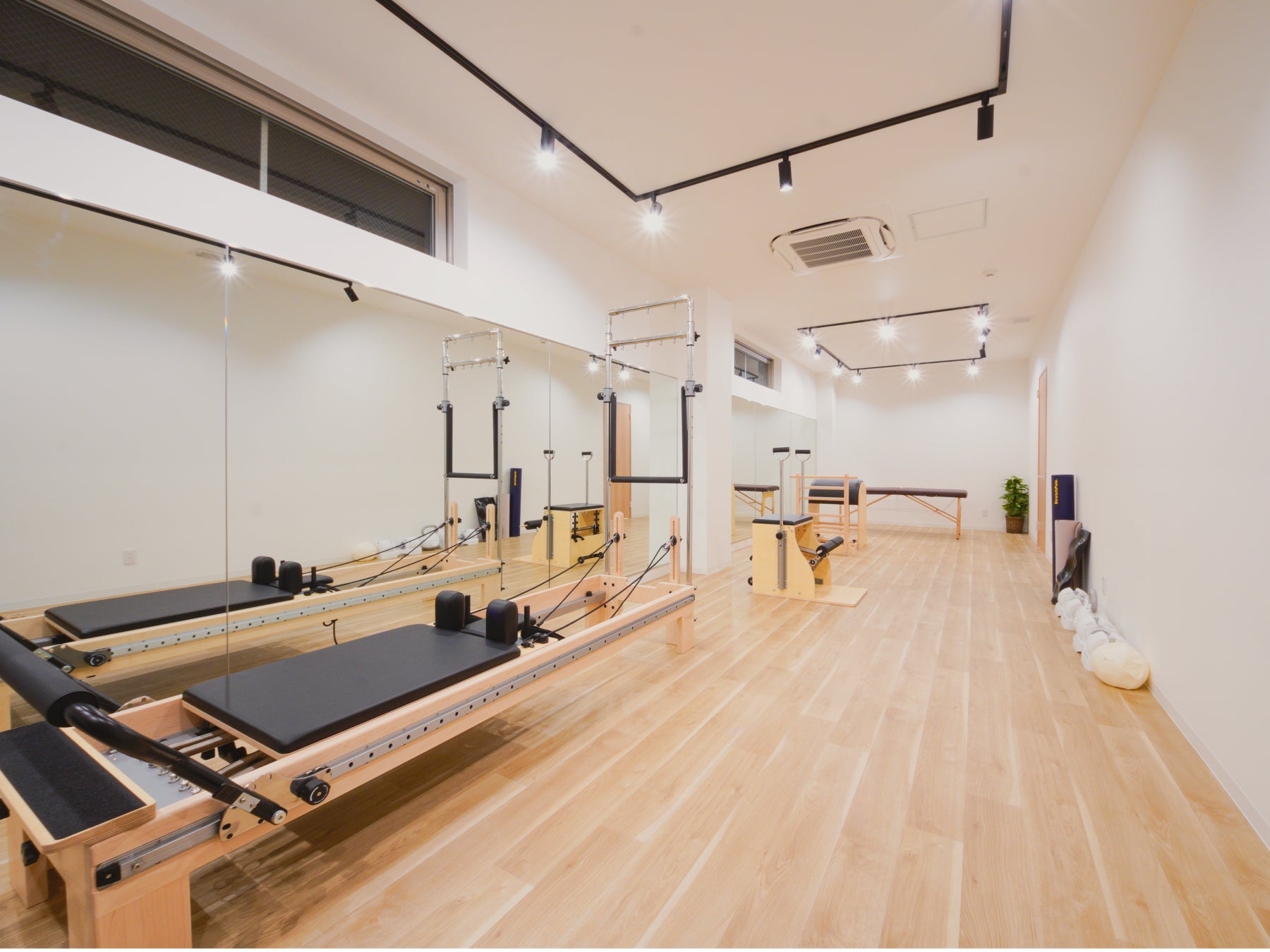 清潔感あふれる明るいスタジオで、こだわりの香りと心地よいBGMがリラックスをサポートします。快適な環境でピラティスに集中できる空間をご用意しています。