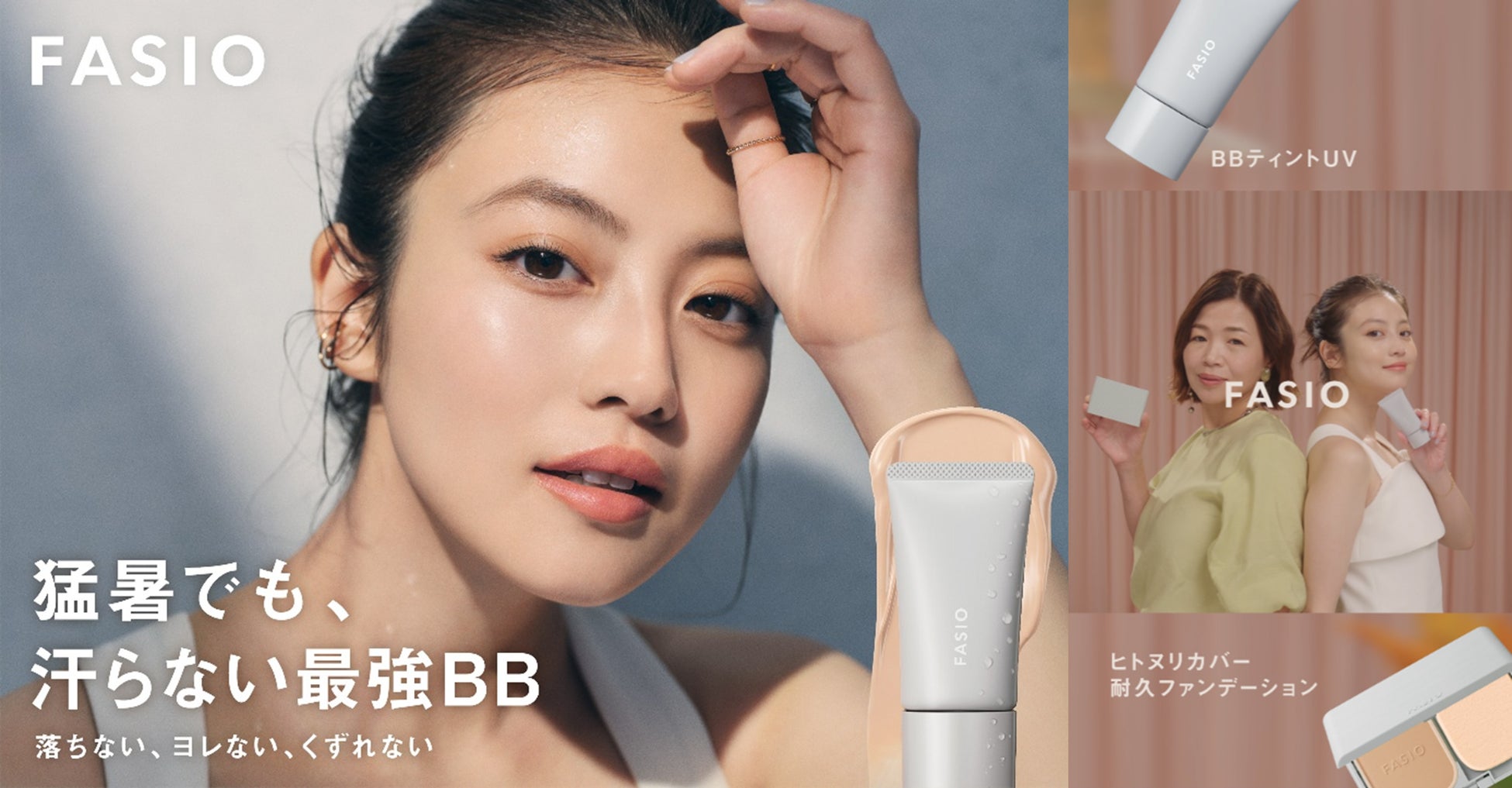 株式会社コーセー(本社:東京都中央区、代表取締役社長:小林 一俊)は、メイクアップブランド 『ファシオ』より大好評の「エアリーステイ BB ティント UV」に「ポア スムース プライマー」(4g)がセットになった「エアリーステイ BB ティント UV 限定キット」と、「ヒトヌリカバー 耐久ファンデーション」を、4月16日(水)に発売します。発売に合わせてブランドミューズの今田美桜さんを起用した新ビジュアルを4月9日(水)に公開します。また、公式SNSと特設サイトでは、今田美桜さんのお部屋【MIO’s ROOM】に遊びに来た大久保佳代子さん出演のスペシャルムービーもご覧いただけます。