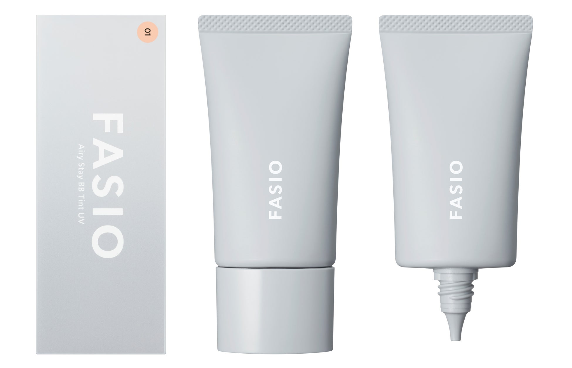 日やけ止め・化粧下地・ファンデーションの効果が1本になった「ファシオ エアリーステイ BB ティント UV」。ラスティング効果に優れ、厚塗り感や白浮き感なく、気になる肌悩みを自然にカバーした明るい美肌が13時間※持続します。高い紫外線防止効果をもちながらも、肌への負担感や乾燥感のない、なめらかな使用感です。柔軟性の高いラスティングキープ成分によって、軽やかなのび広がりと心地よいフィット感を実現。また、肌への付着性に優れたタッチプルーフ成分を配合し、化粧膜が肌にピタッと密着して素肌のように自然に仕上がります。