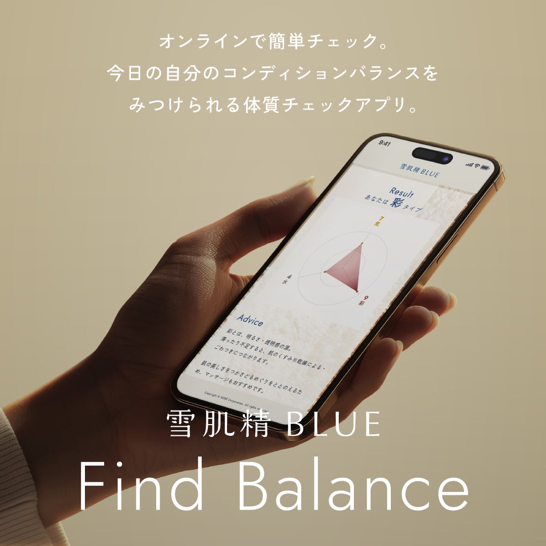 お客さまの肌だけでなく、体質へのアプローチも提案する「雪肌精 BLUE」では東洋発想に着想を得たカウンセリングアプリ“Find Balance”を導入。