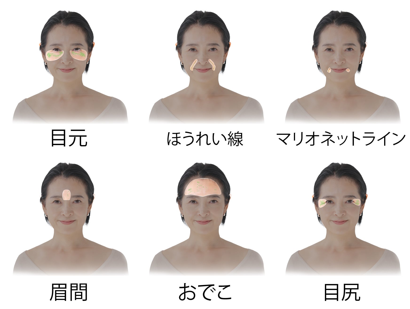 シワ:目元、ほうれい線、マリオネットライン、眉間、おでこ、目尻の6部位に分けて対応可能