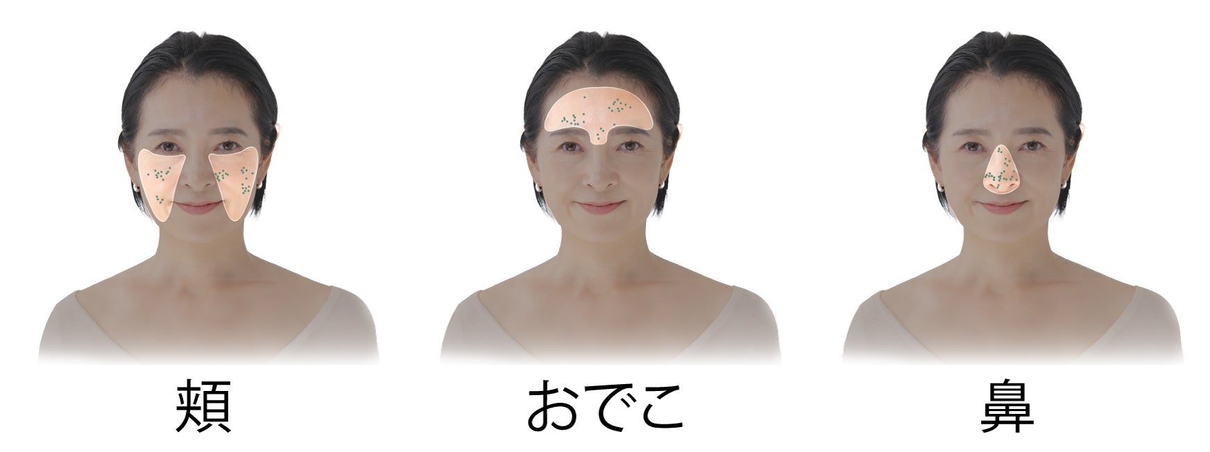 毛穴:頬、おでこ、鼻の3部位に分けて対応可能