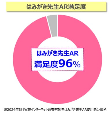 はみがき先生ARは、使用者の96%が満足しており、「はみがきを習慣化できた」「子どもが楽しくはみがきができた」と、忙しいママ・パパのはみがき育児の助けになっています。