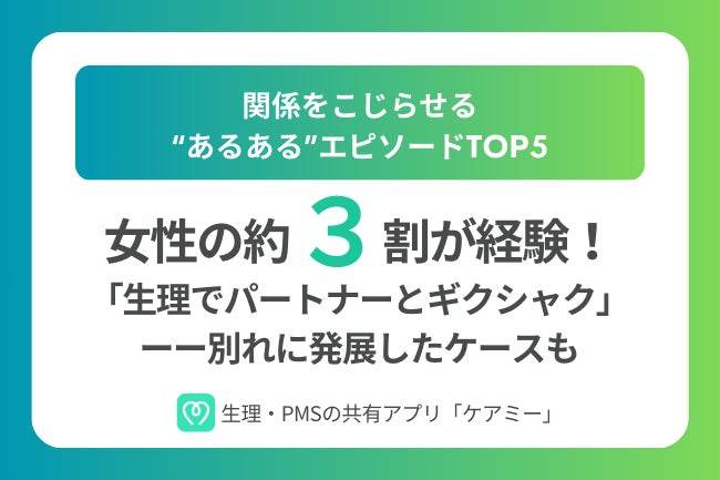 利用者数80万人の生理・PMS(*)の共有アプリ「ケアミー」を運営する株式会社ヘルスアンドライツ(本社:東京都渋谷区、代表取締役:吉川雄司)は、15~49歳の女性500人を対象に「生理が原因でパートナーとうまくいかなかった経験」に関する調査を実施しました。