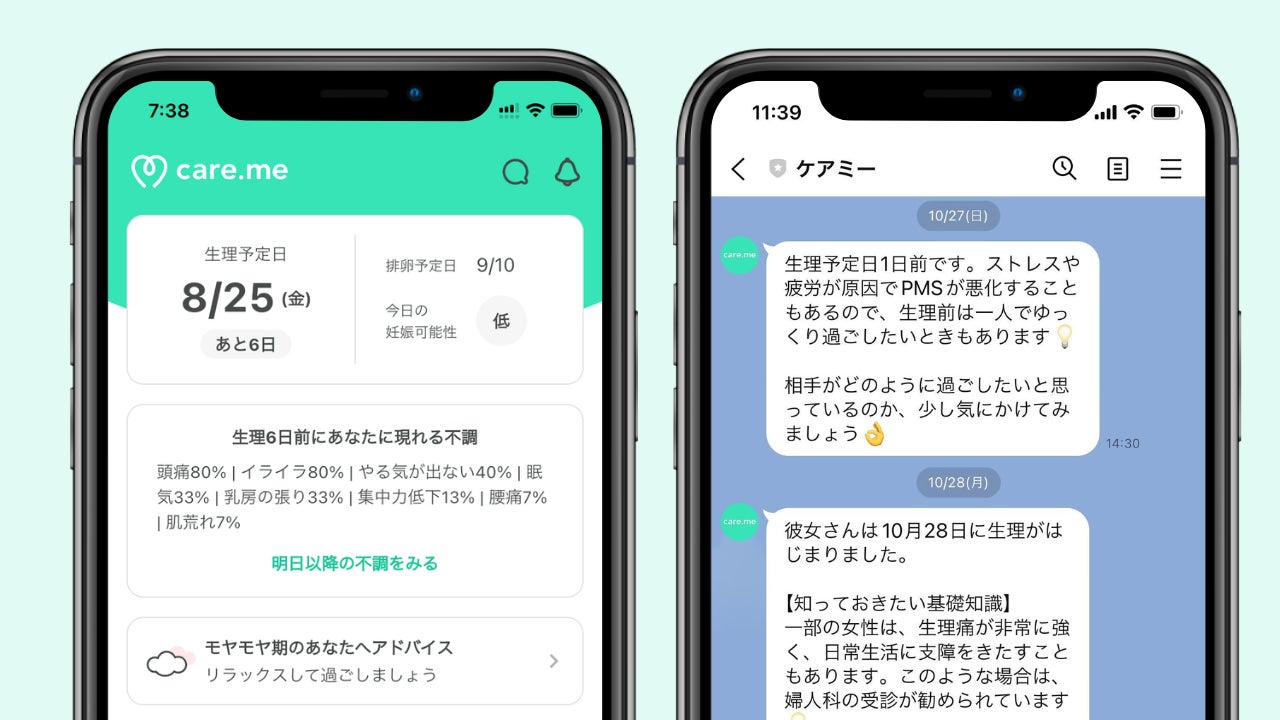 ケアミーは、生理やPMSをLINEでパートナーに共有できる産婦人科医監修のアプリです。