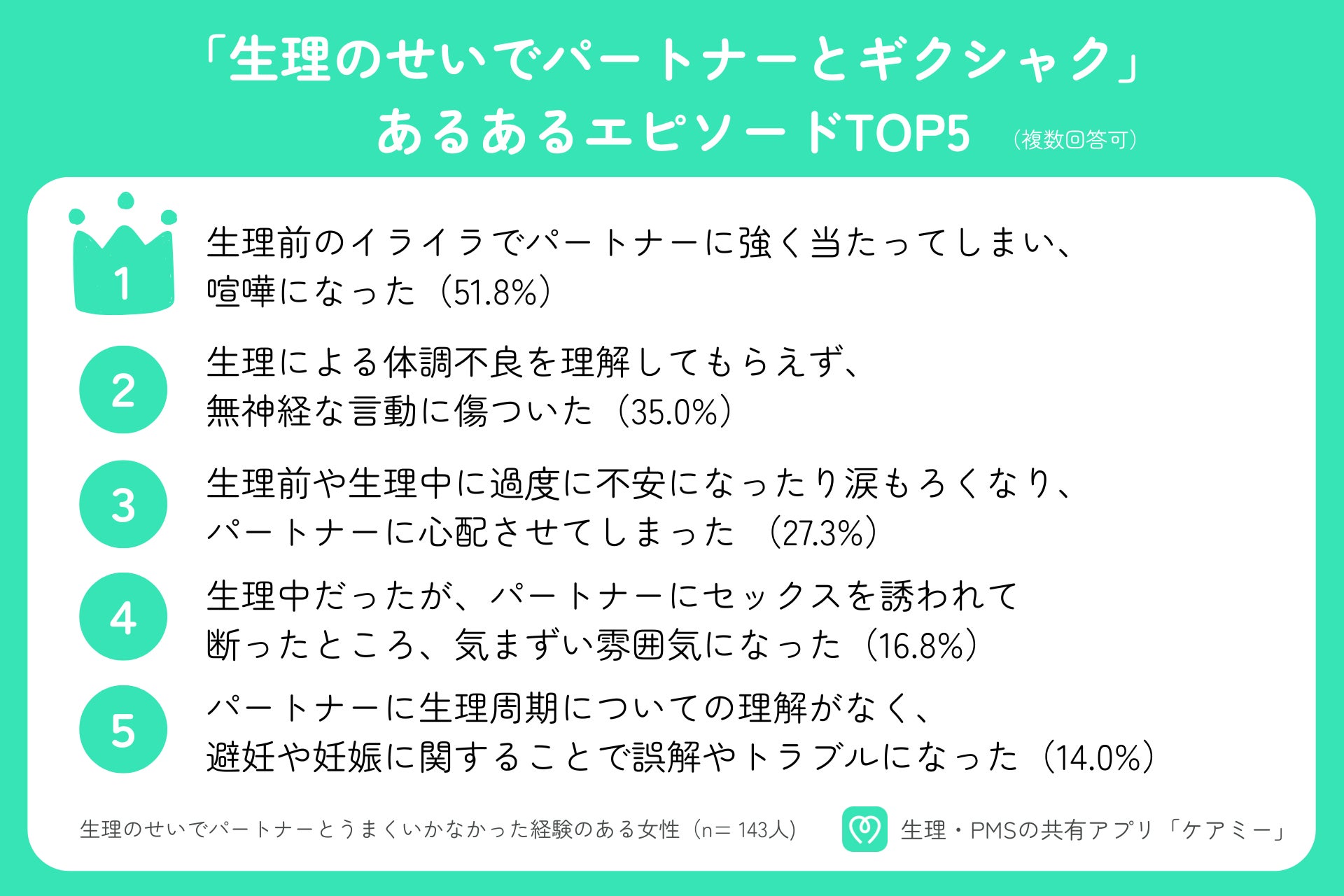 【調査結果②】「生理のせいでパートナーとギクシャク」エピソードTOP5。最も多いのは「生理前のイライラで喧嘩に」