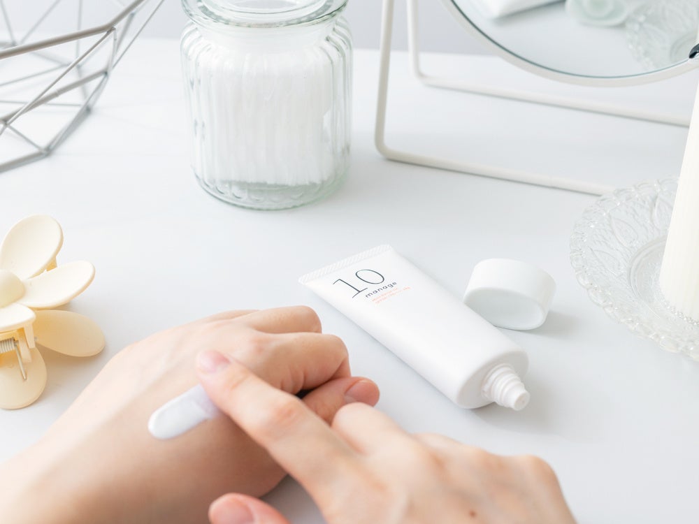 「manage 10 モイスト バリア UV」は、なめらかにのび、肌へなじみやすく、べたつかないテクスチャー。