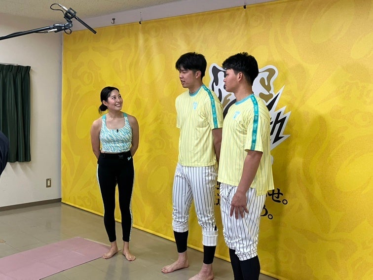 野球観戦中に1分程度で心身をリフレッシュできるオリジナルヨガを考案。肩や腰など観戦中に凝り固まりがちな部位をほぐすことができ、長時間の座り姿勢で気になる脚のむくみ解消にも効果的です。9日の冠試合内では、観客の皆様のヨガ体験タイムを実施する他、選手による体験シーンを大型ビジョンで放映予定です。
