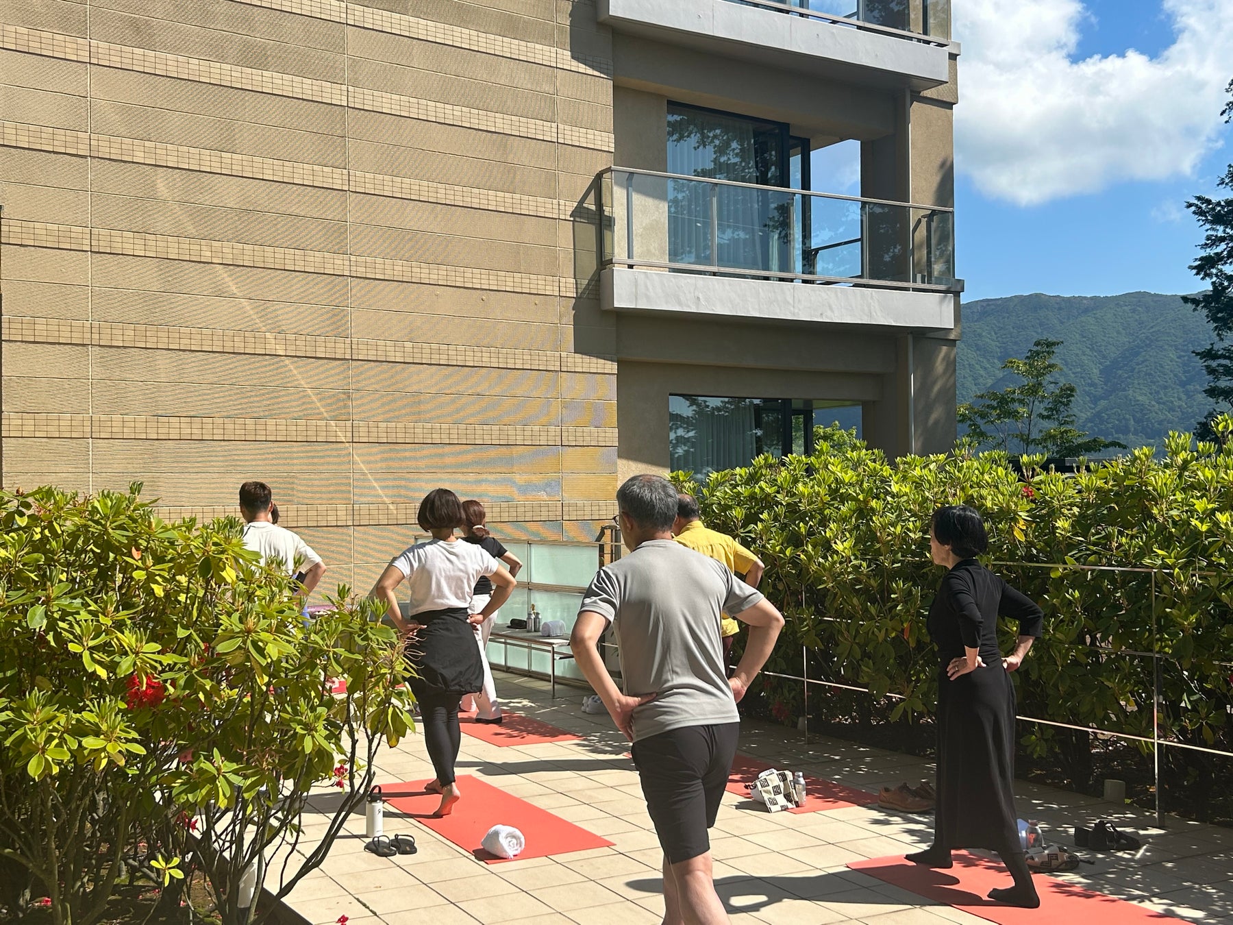 お天気にも恵まれ山の朝のさわやかの空気のもとで、初心者にもやさしいヨガのレッスンでお客様にリラックスした時間を過ごしていただくとともに、ウェルビーングの考えをホテルが推進していることや、ウェルネスデイについて知ってもらう機会となったことは有意義でした。