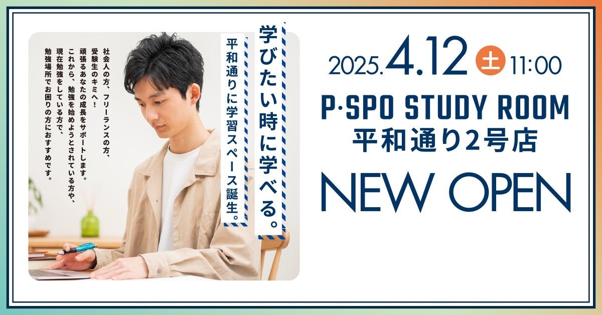 株式会社三福ホールディングスは、学生街に新しい学習スペースとなる「P・SPO 平和通り2号店」を2025年4月12日(土)にオープンいたしました。