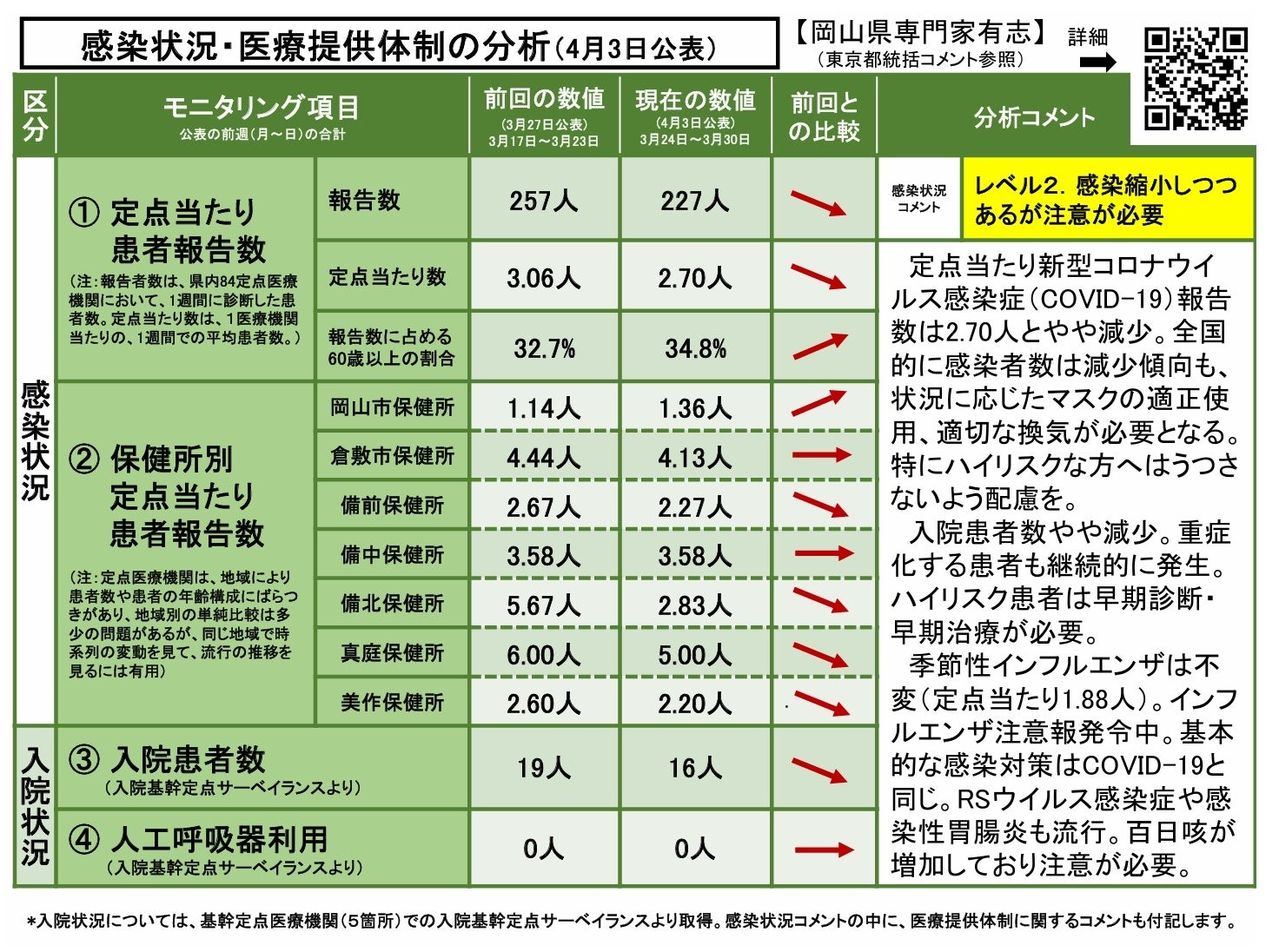 〔前回(2025年3月27日(木)):レベル2.感染縮小しつつあるが注意が必要〕