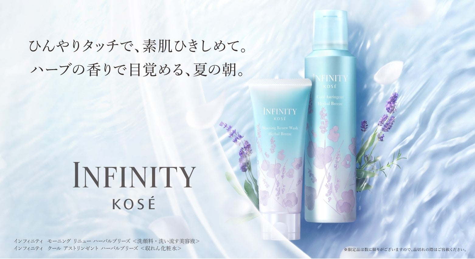 株式会社コーセー(本社:東京都中央区、代表取締役社長:小林 一俊)は、ハイプレステージブランド『インフィニティ』から、夏の朝にぴったりな朝専用のジェル洗顔「モーニング リニュー ハーバルブリーズ」と、ひんやりタッチで毛穴の気になる肌を引き締める収れん化粧水「クール アストリンゼント ハーバルブリーズ」を、2025年5月16日より全国の『インフィニティ』取り扱い店舗(ドラッグストア、GMS)とMaison KOSÉ(直営店およびオンラインサイト)、一部ECサイトで限定発売します。