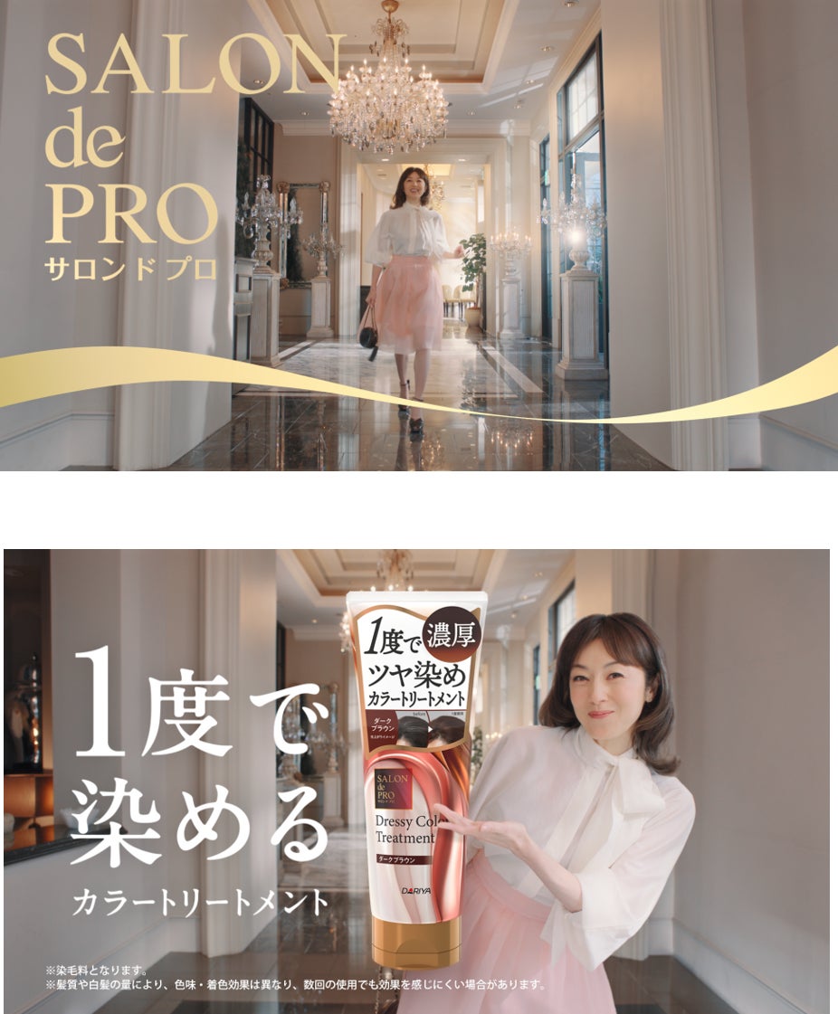 ダリヤが展開する白髪染めブランド「サロン ド プロ」の新CMが完成!2025年2月26日に発売した新商品「ドレッシーカラートリートメント」のCMを4月20日より放映いたします。