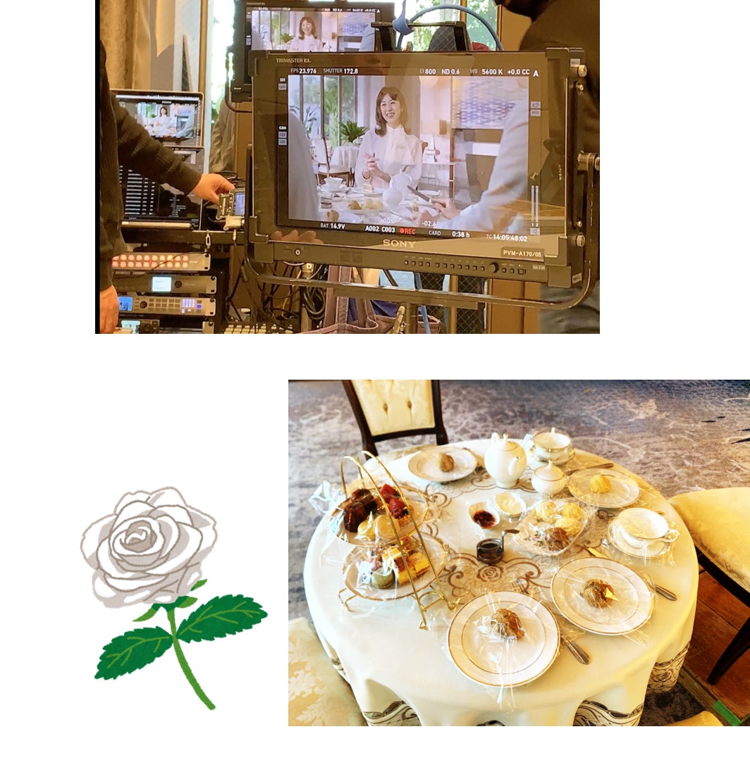 高岡さんはエレガントなドレッシースタイルで登場。仲の良い友人との待ち合わせという設定のシーンから撮影が始まりましたが、その姿はまるで映画のワンシーンのように印象的でした。